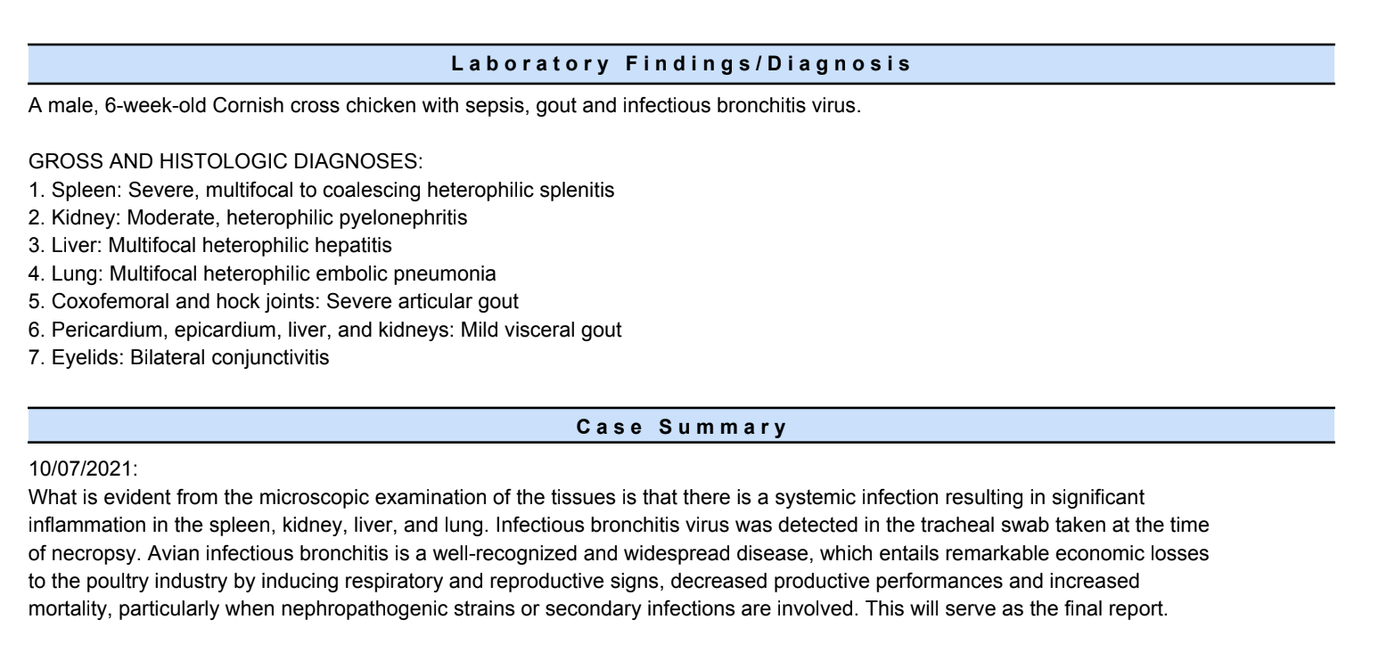 Infectious bronchitis virus. A deadly coronavirus that causes massive losses in poultry farms, and that sickened Ethan and Jax in the recent Foster Farms trial. This disease causes airsacculitis, the inflammation of the air sacs of the lungs, and animals sickened will often slowly suffocate to death, as their bodies become oxygen starved.