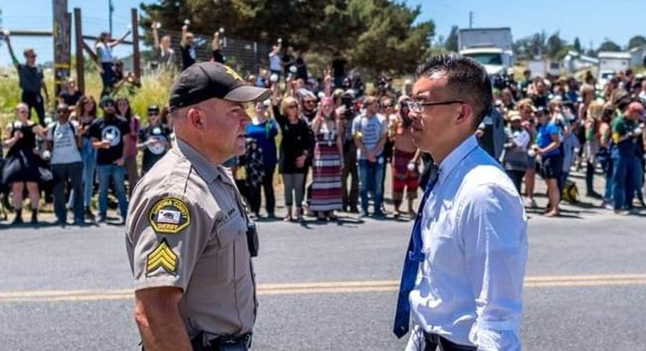 In the Sonoma case, I was sentenced to 38 days in jail for organizing the mass open rescue of distressed hens trapped in cages at one of the largest egg factory farms in the state, Sunrise Farms. That facility’s owners had falsely marketed its products as certified humane; falsely accused us of “terrorism” for documenting their abuses; and even outright lied in court by claiming they had no battery cages when, in fact, we found hundreds of thousands of birds in exactly those cages, which violated the state’s landmark law prohibiting intensive confinement.