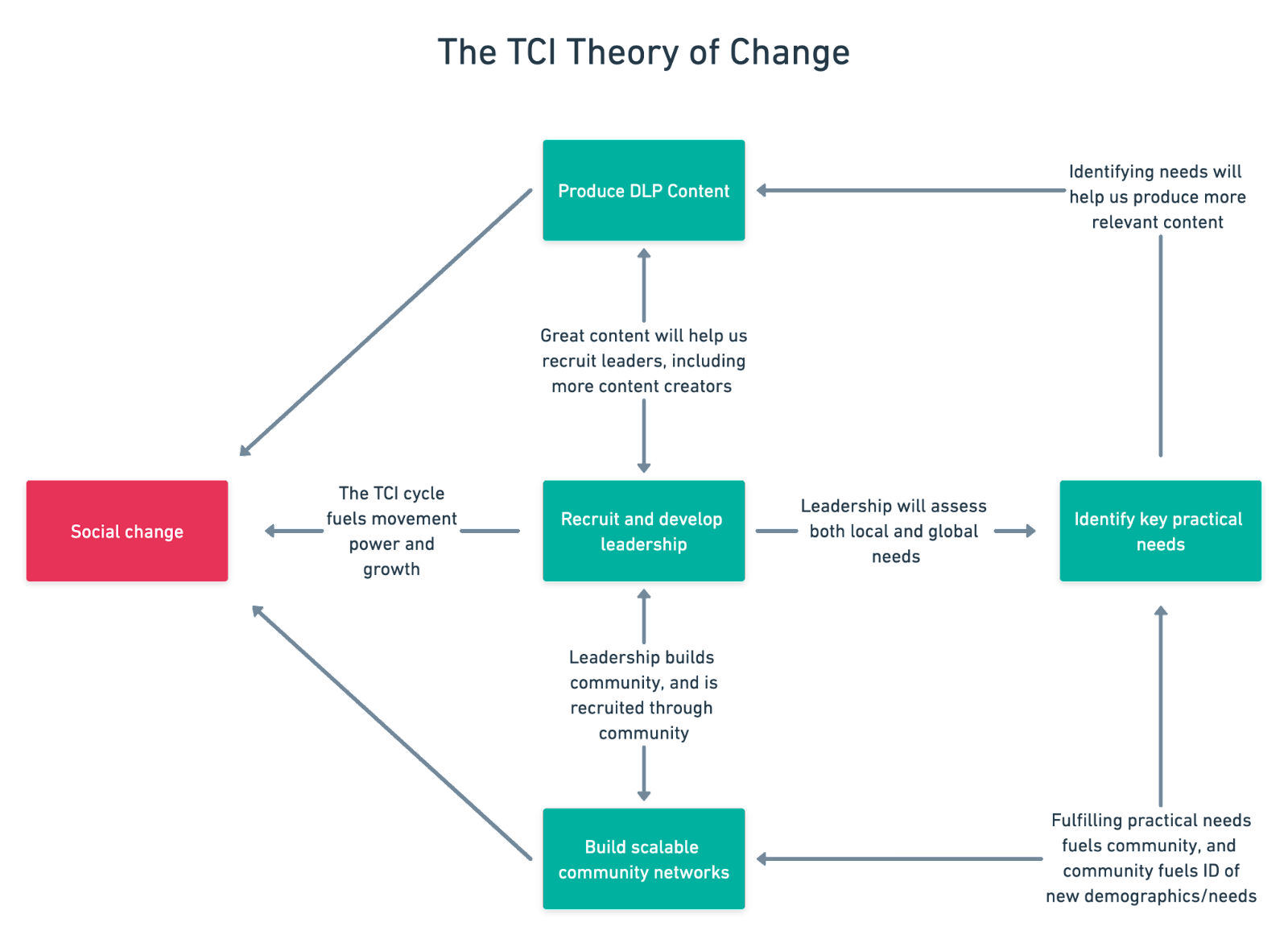 That leads me to the second strategy: developing leaders. I’ve written about the unseen pandemic – the loneliness that is literally killing people, and fueling historic levels of distrust. One of the primary causes of this is that we no longer believe in traditional models of influence; the “hub and spoke” is becoming as outdated as traditional religion. But we haven’t created alternative models of influence that function, even at small scale. I’ve come to the conclusion that the lack of effective leadership, including, perhaps most importantly, the ability of leaders to work together at scale (i.e., in large numbers, with diverse viewpoints) and manage disagreements, is one of the fundamental obstacles to creating social change. The web model of influence depends on leadership of this sort.