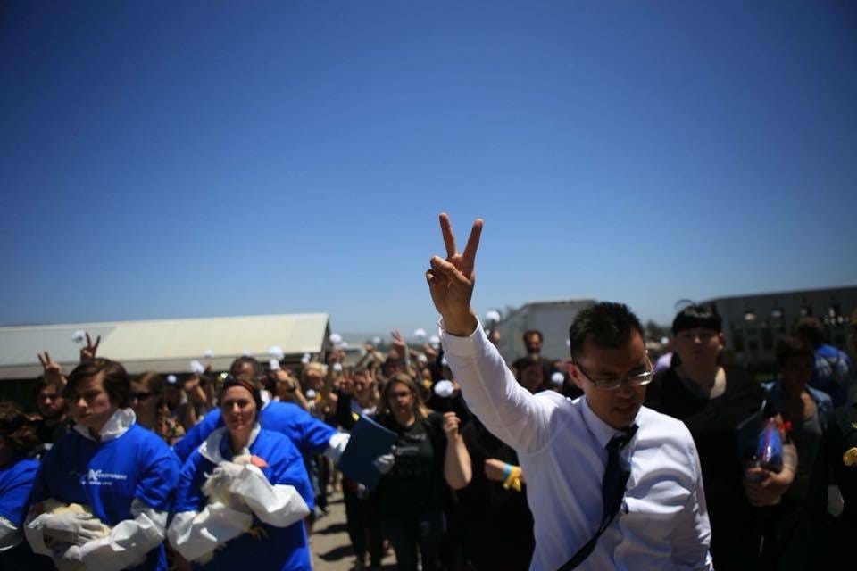 Today, I was arraigned on felony charges in Sonoma County, California, along with my co-defendants Cassie King and Priya Sawhney. The case, which will soon be scheduled for trial, has been a long time in the coming. Our first effort to aid animals at Sonoma County factory farms occurred in May 2018, when hundreds of us entered a massive egg farm — a “cage-free” and “humane” supplier to Whole Foods — and witnessed thousands of animals suffering in cages, in clear violation of California law. After months of tense negotiations with the government, in which we unsuccessfully pleaded with the authorities to protect animals from criminal abuse, we took action again in Sept 2018. This time, the site of our rescue was Petaluma Poultry, the largest organic poultry producer in the nation. Inside, we found animals collapsed on the ground; suffering from bloody wounds so deep that muscle and bone was exposed; and in some cases rotting to death. We set up a veterinary care tent outside of the factory farm and began providing emergency care — but the birds were torn from our arms and delivered to Sonoma County Animal Control.