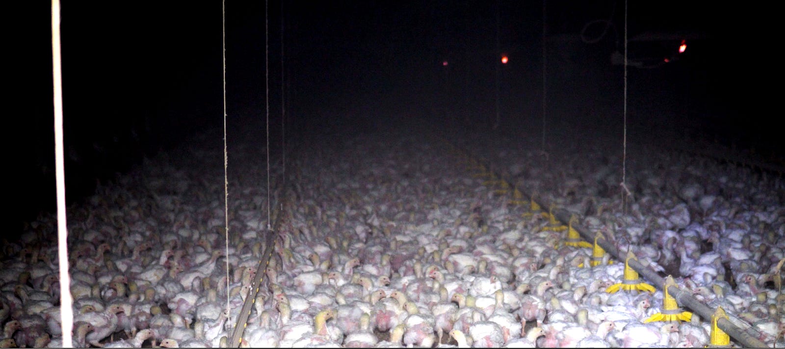First, not a single barn had access to the outdoors, contrary to both legal requirements and the company’s public statements. When investigators placed a 24 hour camera outside the barns, they saw only a single chicken out of tens of thousands outside – apparently due to having escaped the barn.