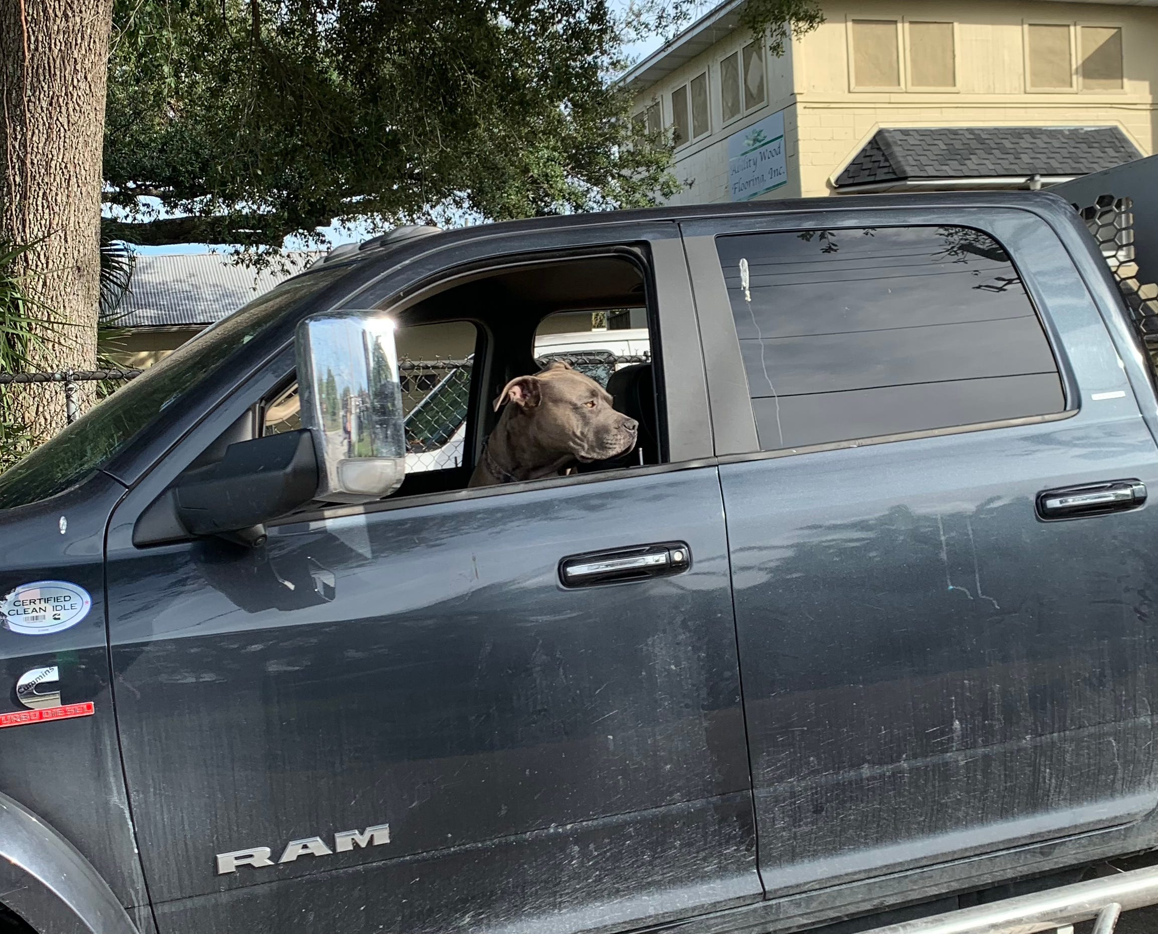 There was the truck driver who walked out of the slaughterhouse, after emptying cages of animals into the facility. His gait seemed infused with shame. His head was curled over, and body posture was tight and closed up. We saw a dead guinea hen in the front of the truck bed, around the place where the first palette of cages had once been loaded with animals. Just through the metal wall into the back of his truck, sat a pit bull who looked toward his family member longingly and lovingly.