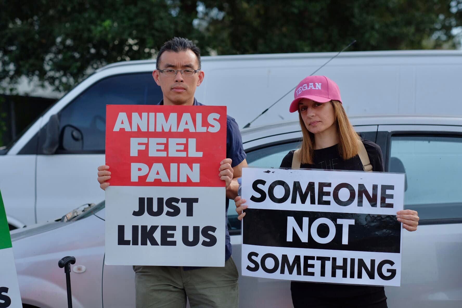By the end of the conversation, the man promised to look more into the subject — as much to trim down his waistline, which he said had gained 30 pounds from “too much meat,” as for the animals whose lives were ending just a few feet away.