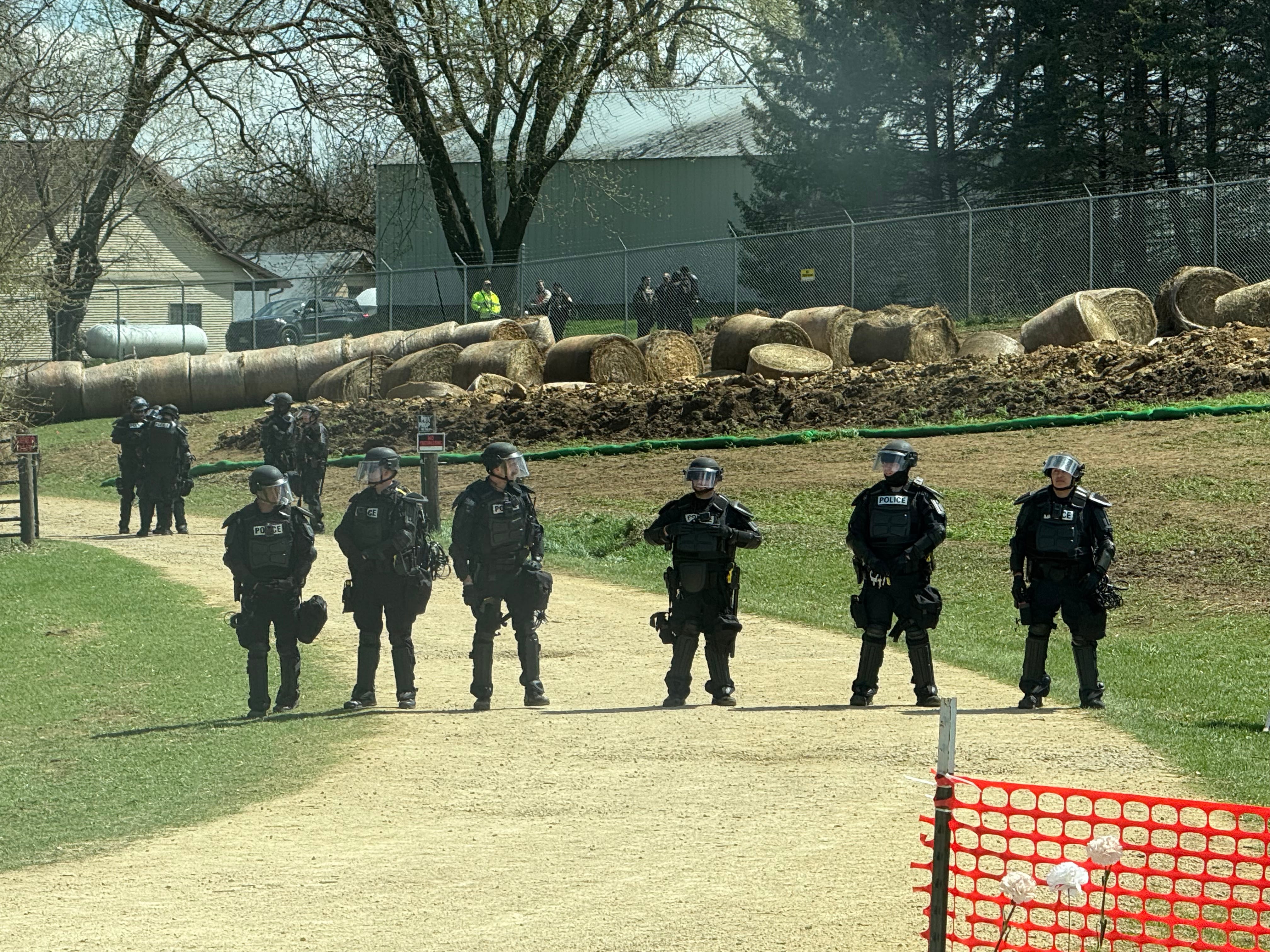 But when she approached the facility she was met with ruthless police violence. One officer shoved her to the ground. Another pepper sprayed her directly in the eye. A third kicked her vulnerable back viciously.