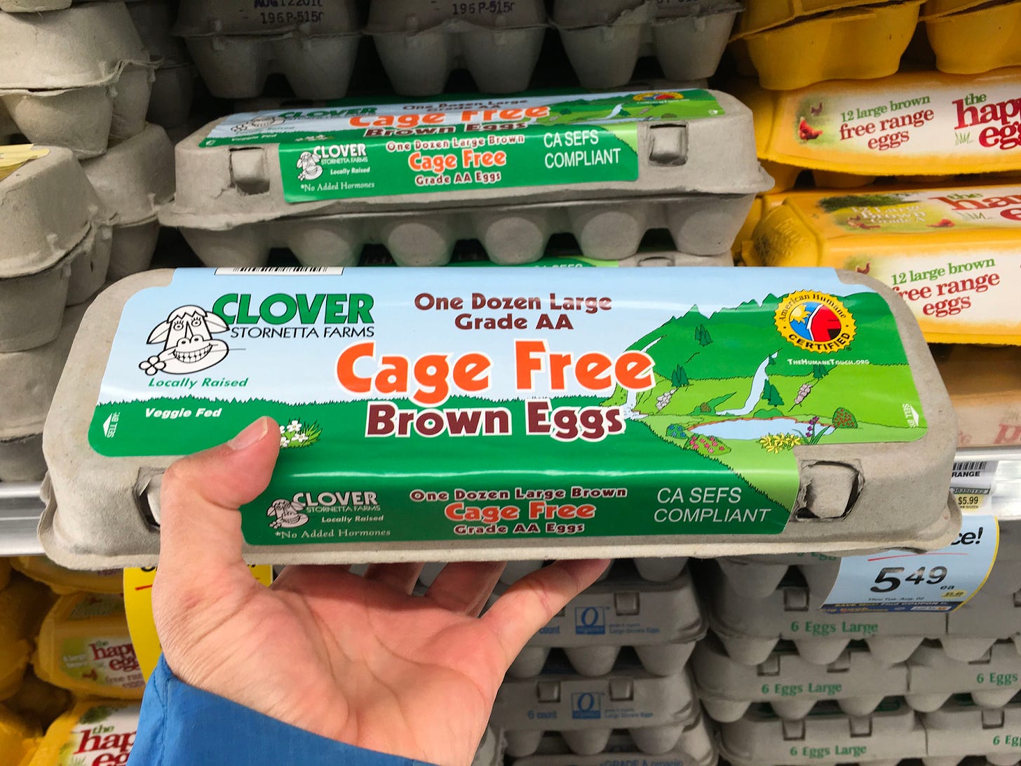 The eggs from this farm are marketed as “Humane Certified” and “Cage Free.” The packaging shows a stream on a grassy mountain field, and the face of a smiling cow. People buying these eggs, from places such as Whole Foods, believe they’re contributing to something like an animal sanctuary. And in this belief, California consumers are supported by the force of law. In 2008, a record number of voters approved Proposition 2, a ballot initiative that was sold to our citizens as a ban on cages in egg-laying farms. Every hen in the state, the law promised, would have the right to “stand up, fully extend their limbs and turn around freely.”