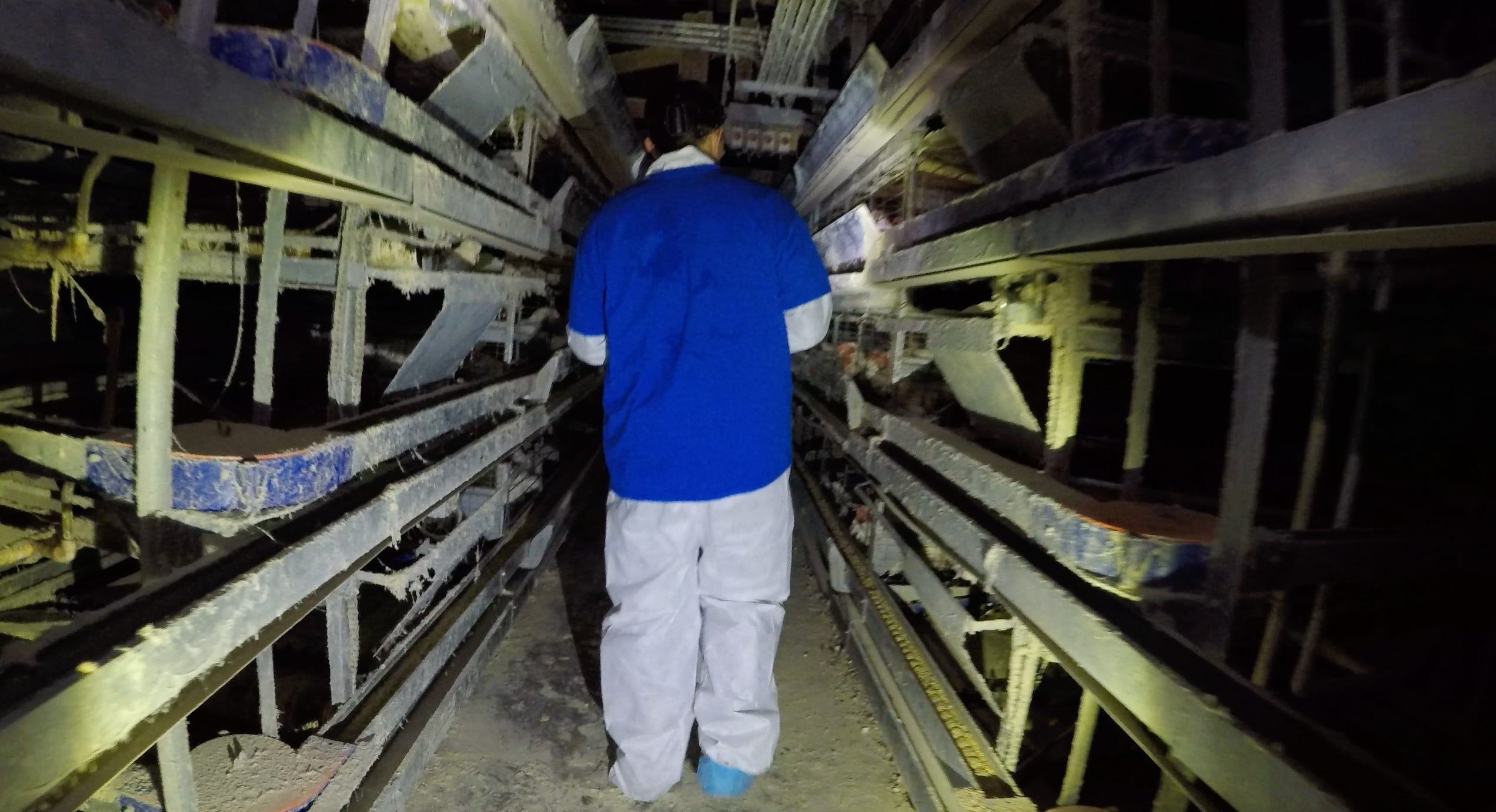 Qing was found on the floor of a factory farm cage – a cage that, according to California law, should have been banned.