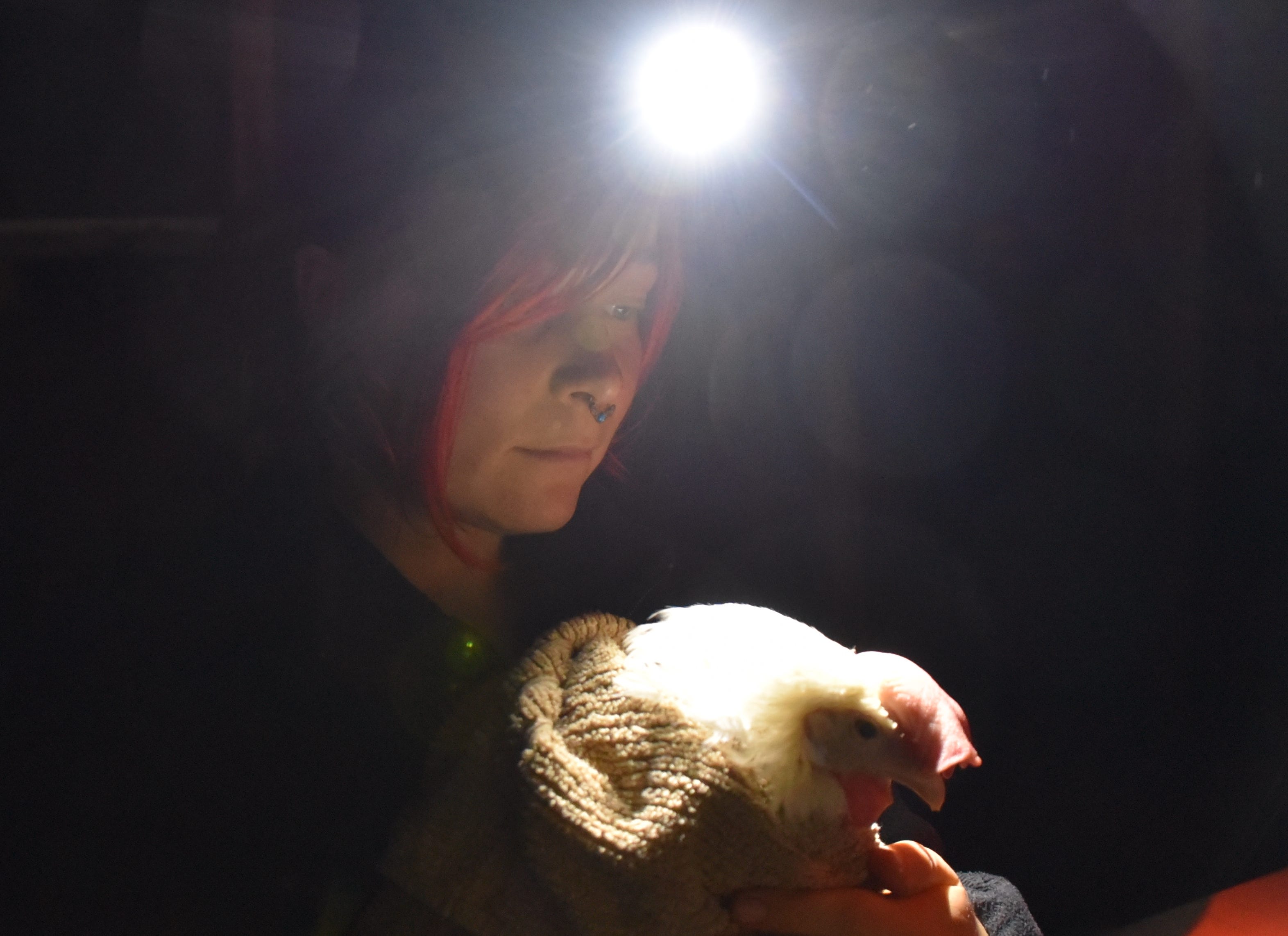 I am in the middle of one of the largest egg farms in the state of California, staring at a bird who should not exist.