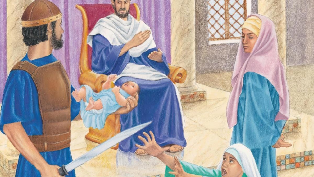 The dispute is brought to King Solomon. And, after a few moments of thought, he issues a ruling: