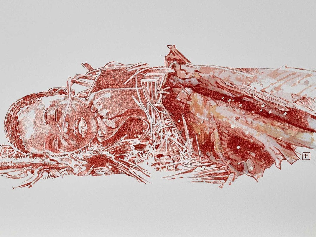But to understand this, I thought it would be interesting to dive a little more deeply into the history of funeral ceremonies. And it turns out that history is a long one. The oldest intentional burial in the historical record occurred at Qafzeh, Israel, over 100,000 years ago. Fifteen modern humans were found in a burial site, with 71 pieces of red ocher and ocher-stained stone tools, suggesting there was some ritual associated with their burial. Perhaps even more interesting is the burial site of a human child 78,000 years ago in Africa. The child, whose body was analyzed extensively using forensic tools and microscopes, was apparently laid down in a fetal position, and perhaps covered with a shroud and given a pillow. Those who buried her wanted her to feel peace and love even in death. To me, this shows that remembering the dead is part of who we are.