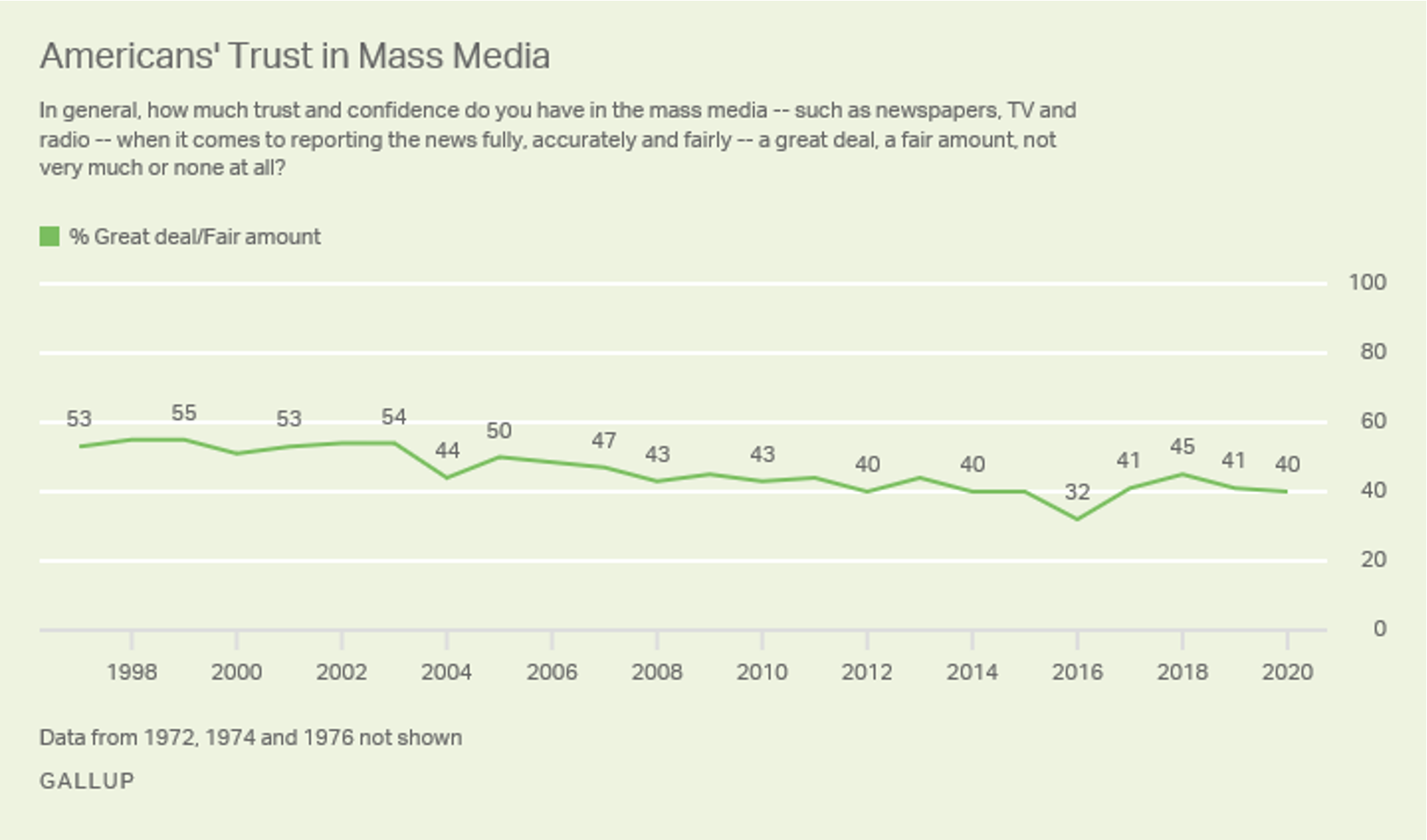 The third takeaway is that we should be less trusting of the media. I don’t want to be an alarmist. I don’t think there has been a sudden decline in media quality driven by corrupt plutocrats, as some have suggested. And despite some fear mongering, public trust in the media has not suffered a precipitous decline. Trust in media has actually been going up slightly and was at its lowest point in 2016. But the fact of the matter is that the media is a business, and as a business, its north star is profit, not truth. And if the Wall Street Journal — one of the best and highest-integrity newspapers in our nation — can say false things about Facebook, and create a firestorm with little accountability, then that probably means other media is saying even more false and exaggerated things with impunity.